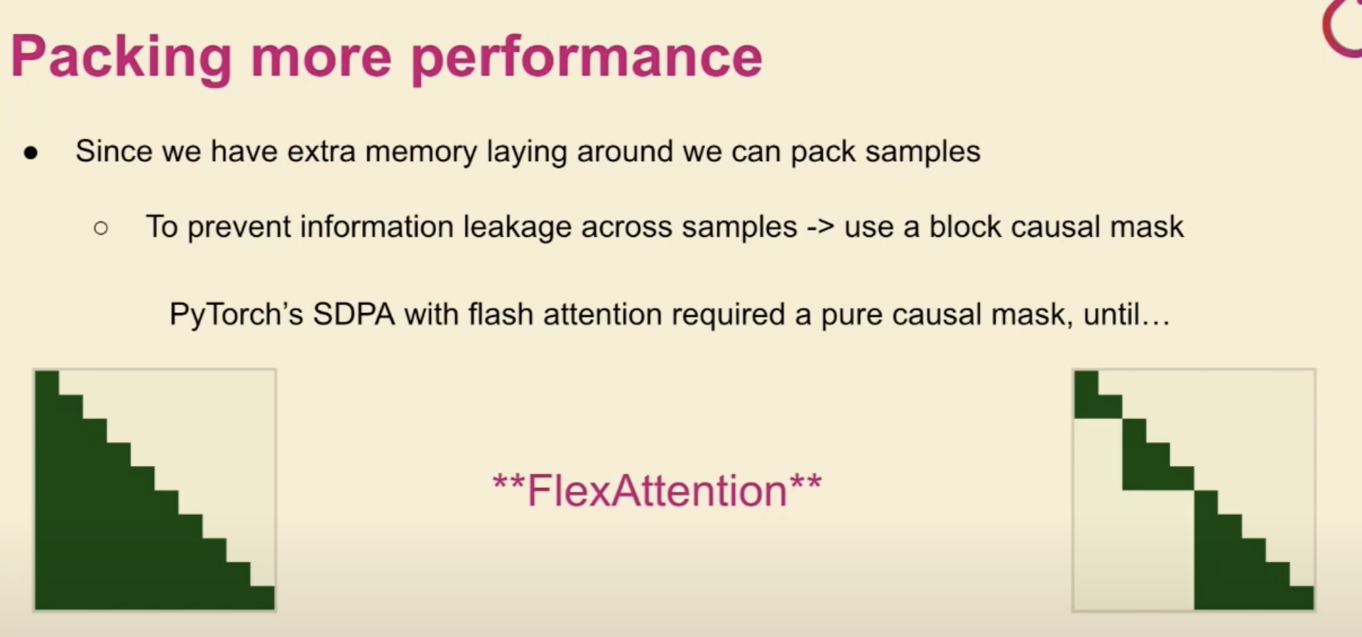 Block causal mask to pack samples